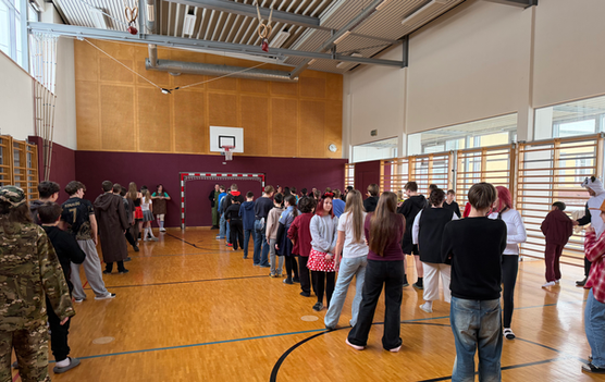 Nach den Klassenfaschingsfeierlichkeiten mit köstlichen Faschingskrapfen ging es für alle in den Turnsaal, wo verschiedene Spiele gespielt wurden.
